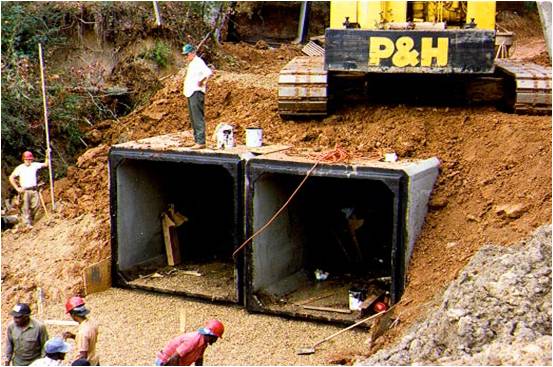 Multicell installations require some means of positive lateral bearing between boxes, compacted earth fill, granular backfill, flowable fill, grouting, etc.